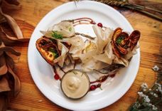 250/20/30/3 г • Слегка островатая курятина с грибами и овощами, завёрнутая в блины – отдалённый славянский аналог мексиканских бурритос. Сытный привет с солнечной плодородной Слутчины! Traditional Slavonic pancakes with spicy chicken, vegetable and mushroom filling