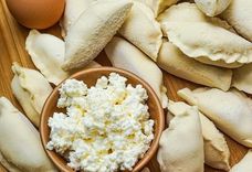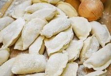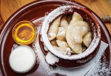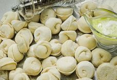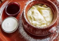 Вареники с картофелем, обжаренным лучком и сметаной / Vareniki with potatoes, fried onion and sour cream