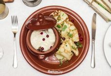 320/50/5 г • Колдуны по-татарски. В белорусском ресторане? Давнее блюдо именно белорусско-литовских татар, не поволжских или крымских. живя у нас уже 6 веков, перейдя на белорусский, но сохранив веру и обычаи, наши татары, искусные кожевенники и огородники, славятся и своей кухней. колдуны – cвояк пельменей и вареников. По-восточному пряные - навевают воспоминания о бескрайней степи. такие, наверное ели смуглые воины, помогавшие нашим предкам разбить тевтонов под Грюнвальдом в 1410 г.