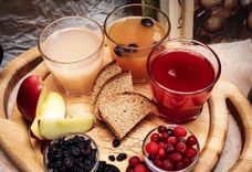 300 г • В шляхетской и мещанской среде Литвы и северо-западной Беларуси в предреволюционное время сложился «канон» домашнего бутылочного кваса из ржаных сухарей, требовавший определённого уровня достатка, умения и материальной оснащённости. При открытии бутылок квас, сильно насыщенный углекислым газом, “стрелял как шампанское”, с седоватым дымкома. Считалось, что небутилированный квас - слишком пресный, а повсеместно ценилась именно “резкость” - как написано в одних мемуарах, “роскошное щипание в носу”. В нашем ресторане мы готовим именно такой квас.А также и очень вкусный яблочный – что-то вроде очень лёгкого сидра, отлично утоляющего жажду и снимающего усталость и депрессию. А довершает наш дегустационный сет прохладительных напитков собственного приготовления, 3 х 100 мл – вкуснейший морс из клюквы, одного из символов белорусской национальной кухни.
