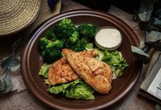 200/50/20/3 г • Филе куриное, соус сливочно-сырный, грудинка копчёная, горчица, зелень, приправы
