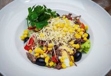 340/3 г • В 2019 г. исполняется 225 лет восстанию за свободу народов Речи Посполитой под руководством Тадеуша Костюшко, национального героя Беларуси, Польши Литвы и США. В его честь мы назвали этот салат. Свежие овощи, яйцо, сыр, маслины, говядина, кукуруза, медово-горчичная заправка / Fresh vegetable, egg, cheese, olives, beef, sweet corn, honey & mustard dressing