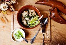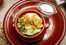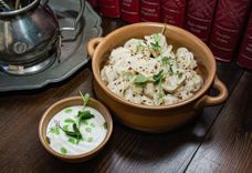 Татарские колдуны с бараниной, кинзой и чесночно-сметанным соусом / Тartar-style dumplings with lamb and garlic cream sauce