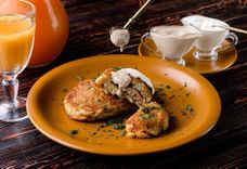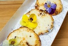 Сырники с изюмом и маково-сметанным соусом / Farmer cheese fritters with raisins and poppy seed & sour cream sauce