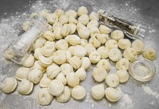 Пельмени со свининой – это название блюда по-русски. У литовско-белорусской шляхты оно издавна называлось «колдуны». И название, и само блюдо пришло из кухни литовско-белорусских татар. Все наши колдуны-пельмени-вареники мы лепим исключительно вручную. Этот вариант мы делаем c рубленой свининой. Лучше всего, отваривать их, и запекать под сметаной и сыром.